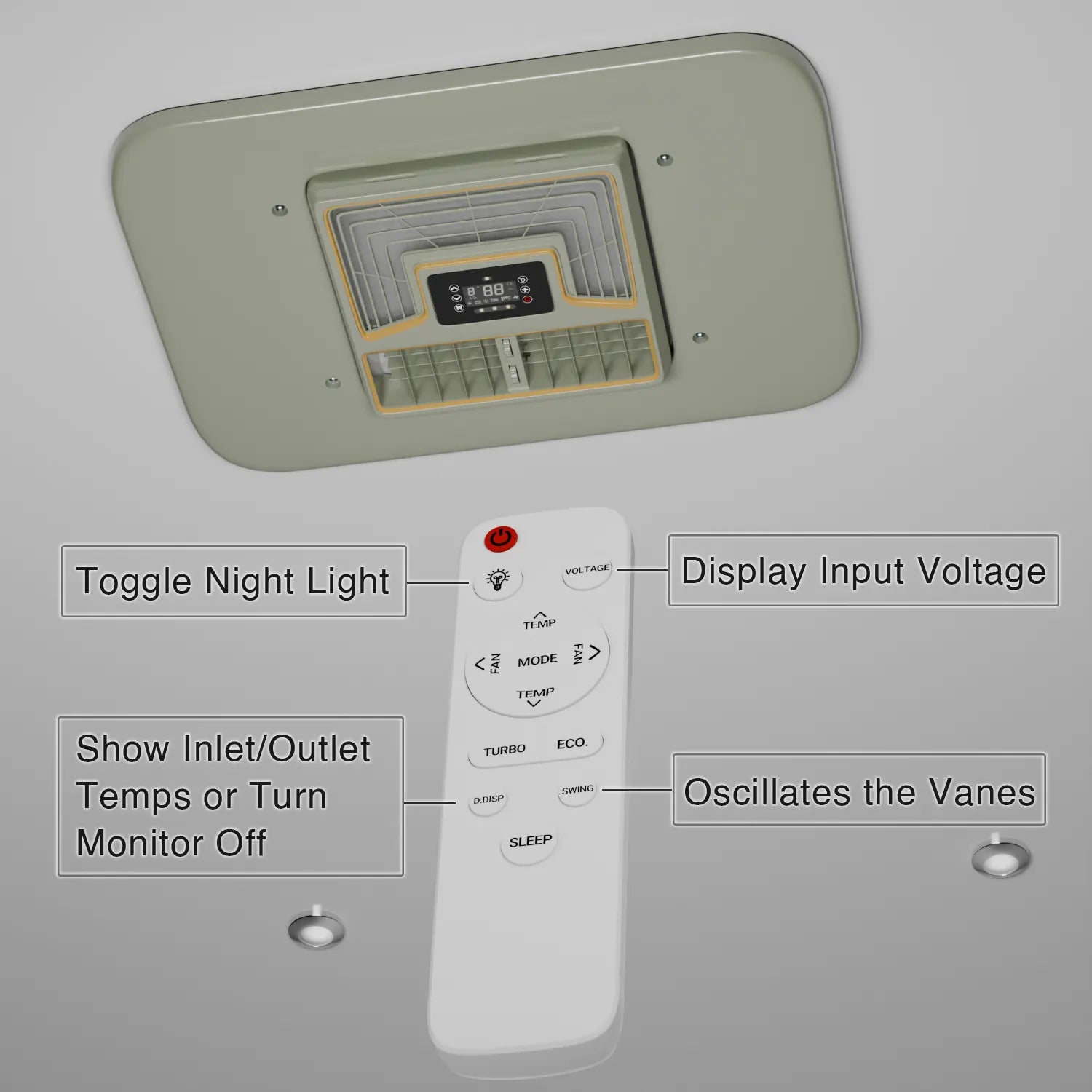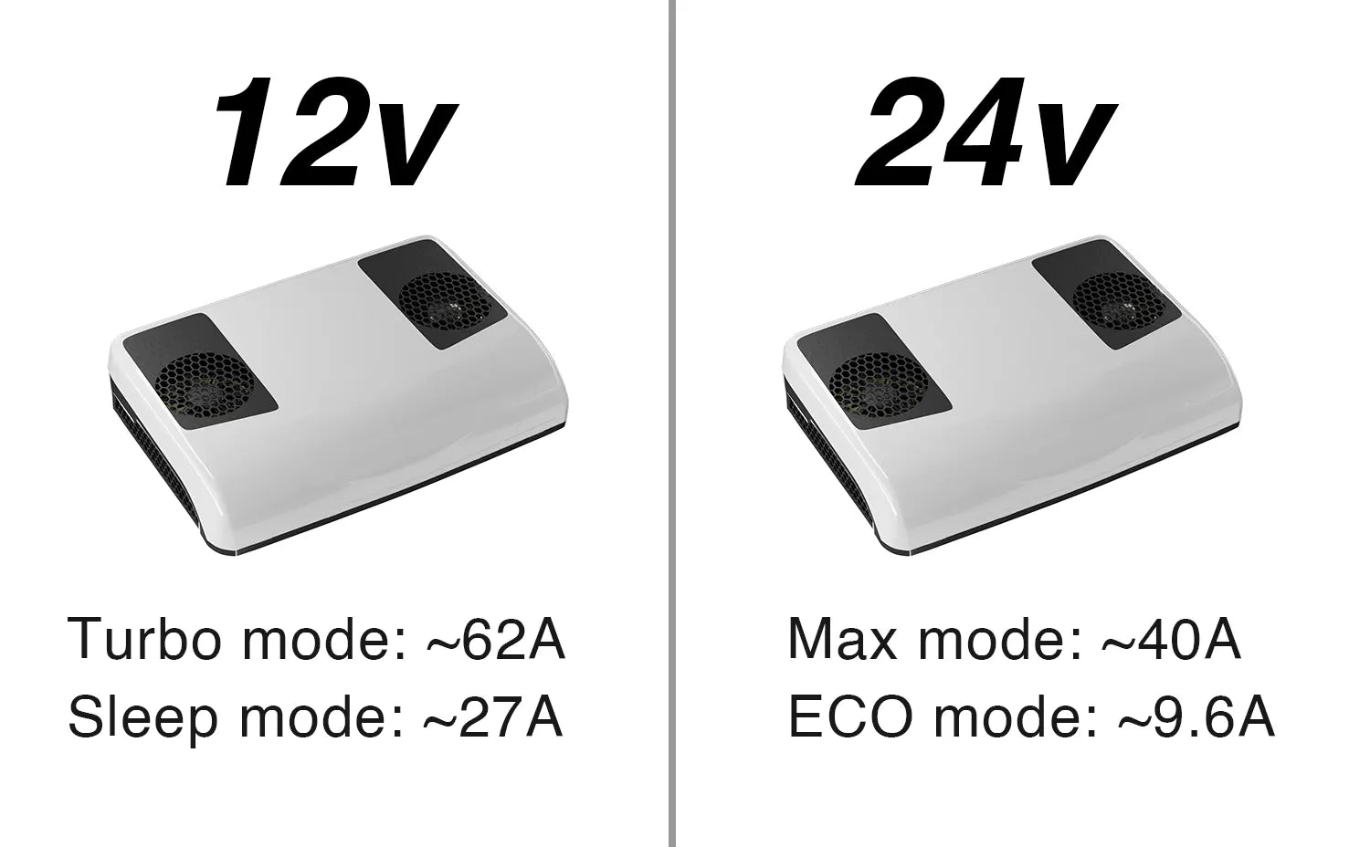 - Ideal cooling capacity for small-to-medium vehicles (vans, campers, single RV bedrooms)