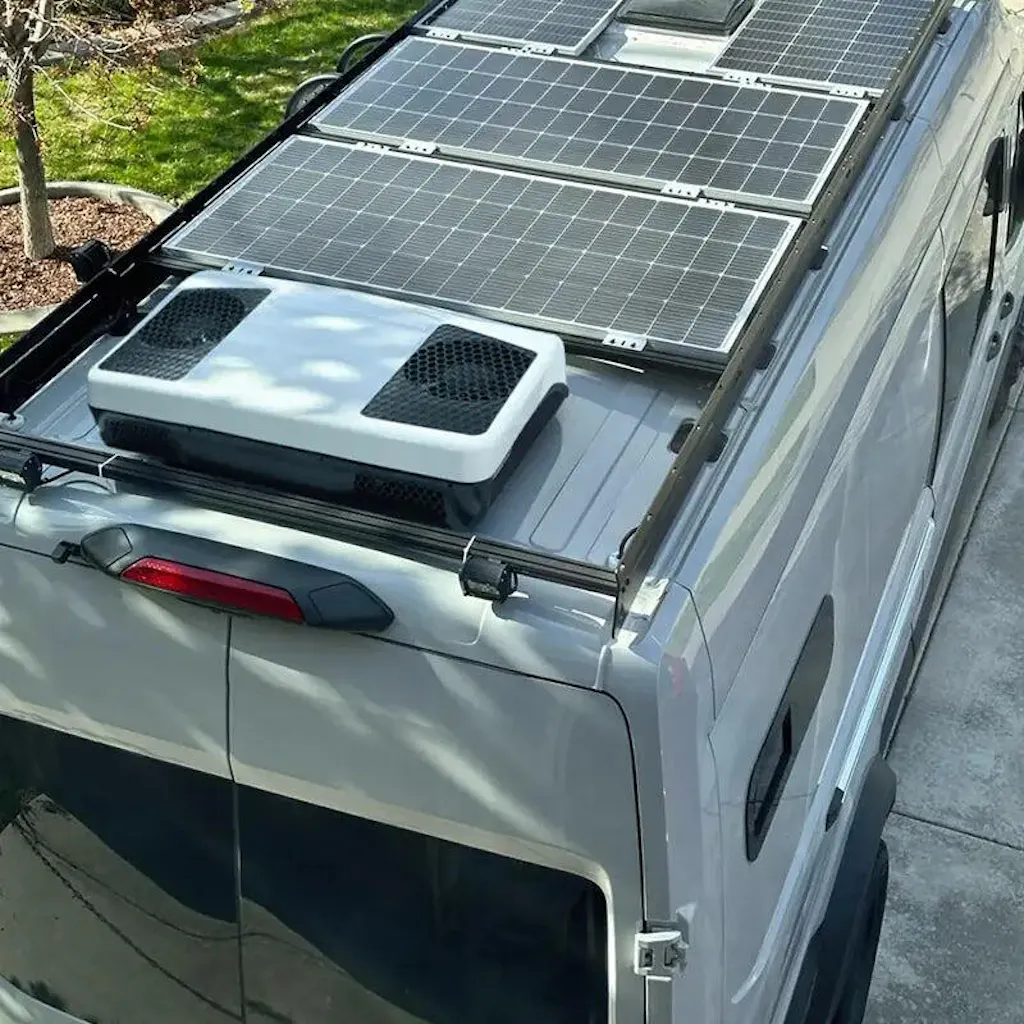 - Ideal cooling capacity for small-to-medium vehicles (vans, campers, single RV bedrooms)