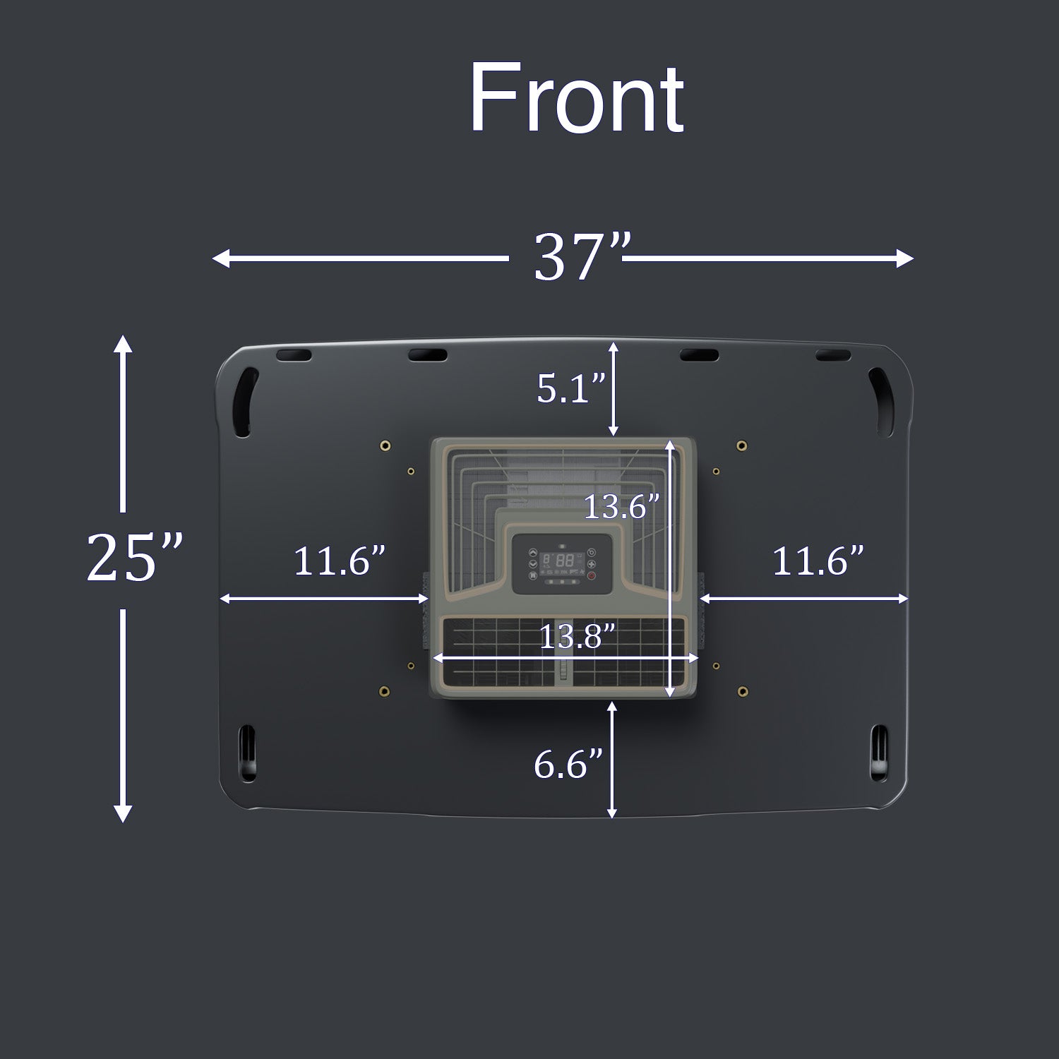 This unit fits into a standard 14.25” x 14.25” roof vent. The inside air box comes pre-assembled to make installation easier.